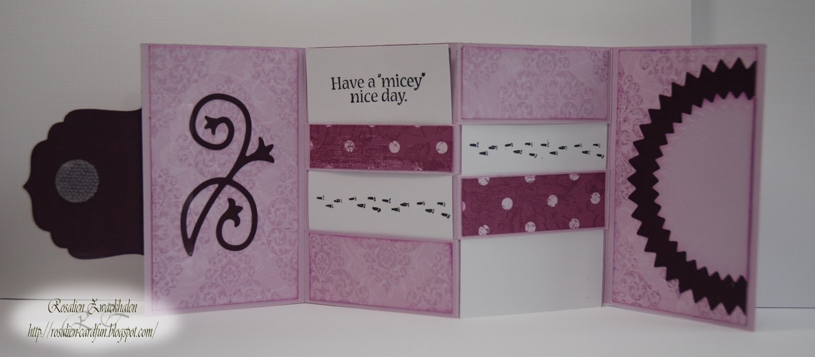 And if you split in the middle center of the card you will find the secret message. It is hard to explain what I mean so you better have a look at Dawns tutorial on You-Tube. That explains everything. ;)